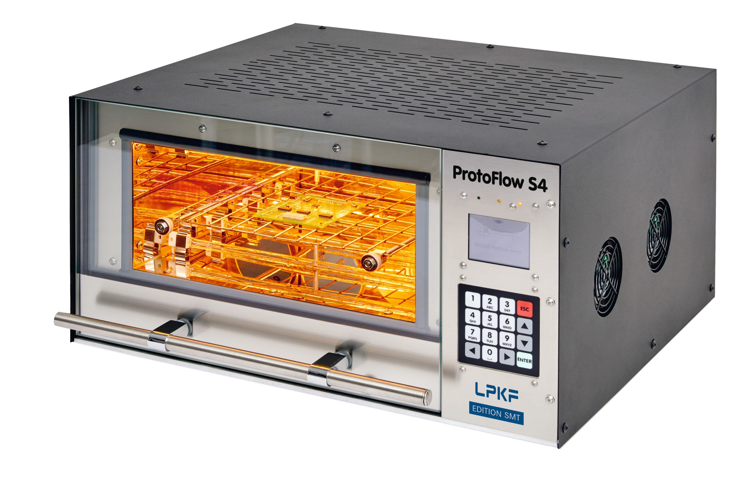 LPKF Edition SMT ProtoFlow S4, 320 x 220 mm boyutuna kadar PCB’lerin kurşunsuz SMD lehimlemesi için uygun, son derece kullanıcı dostu bir konveksiyon fırınıdır.