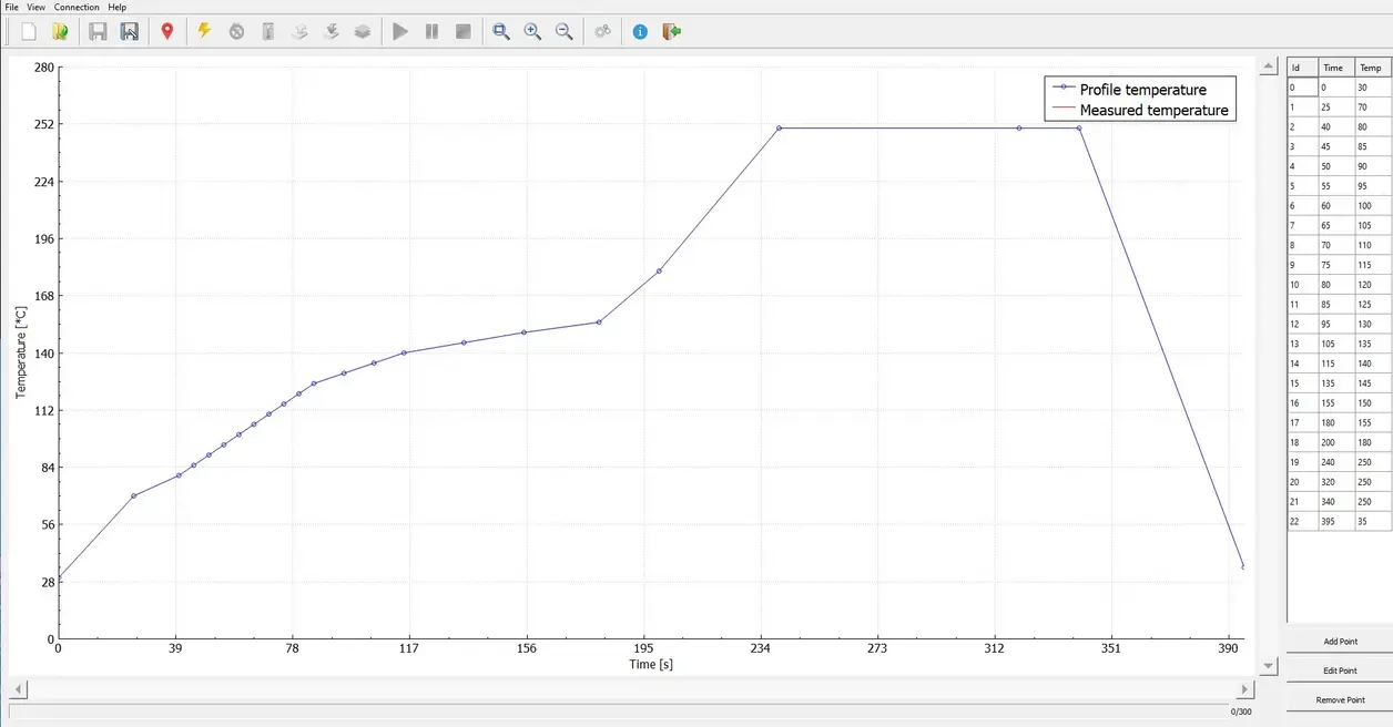 Fırının entegre yazılımı, kullanılan lehim türüne göre optimum işlem parametrelerinin kaydedilmesine olanak tanır. Önceden tanımlı işlem profillerine ek olarak, sıcaklık eğrileri ve işlem süreleri kullanıcı tarafından serbestçe ayarlanabilir ve özel profiller olarak saklanabilir.