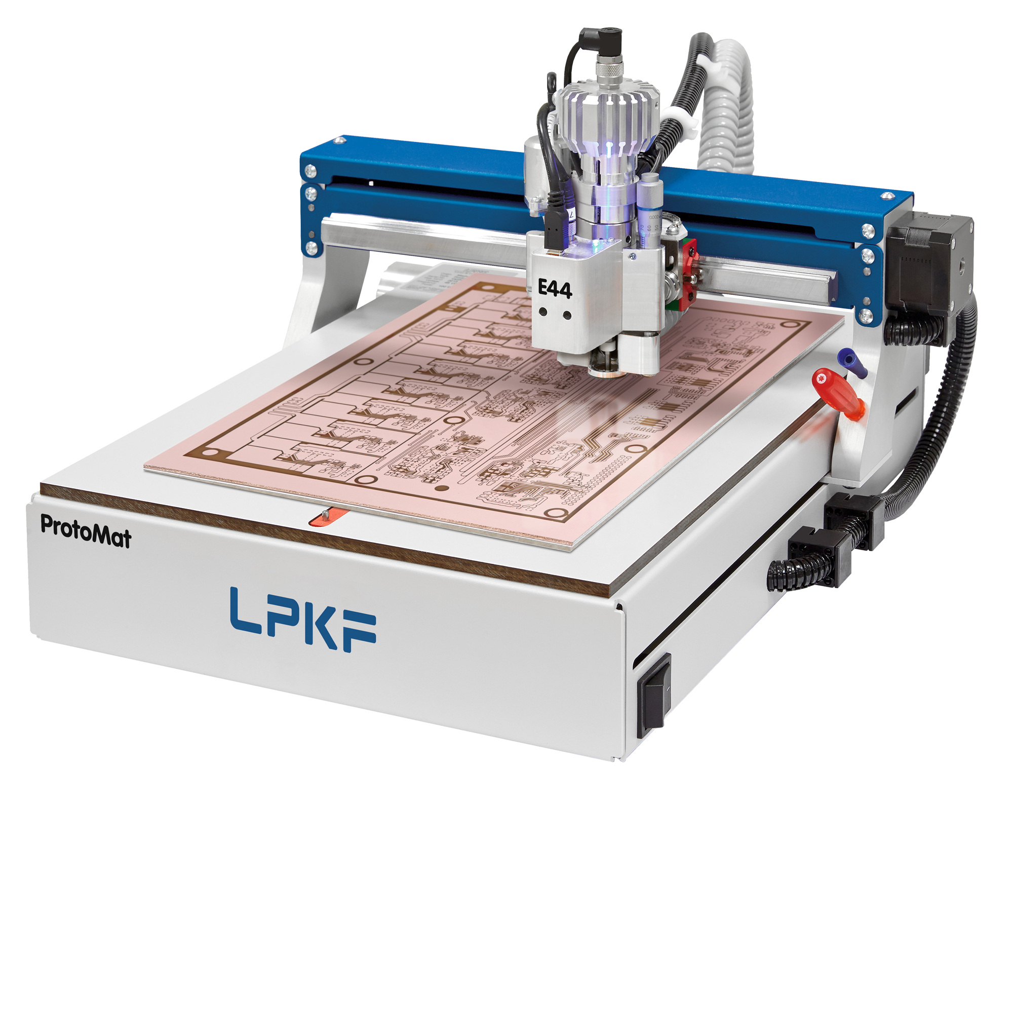 ProtoMat E44’ün başlıca kullanım alanları; bakır kaplı devre kartı malzemelerinde (PCB) yapıların freze yöntemi ile oluşturulması, deliklerin delinmesi ve kenar kesimi yapılarak büyük devre materyalden prototipi yapılan tekli devrenin ayrılmasıdır. ProtoMat, küçük parçalarla çalışırken ya da ara sıra kullanım durumlarında dahi avantajlarını gösterir. Yüksek hızlı ProtoMat S serisi sistemleriyle benzer bir hassasiyet sunarken, yalnızca temel özelliklerle donatılmıştır.